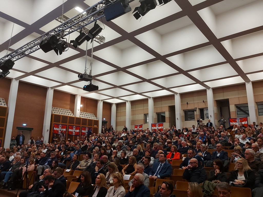 Un grande successo per la Lega di Biella riunitasi a Città Studi attorno ai massimi esponenti dell’ amministrazione locale, regionale ed europea che, in attesa del Segretario Federale Matteo Salvini e Regionale Molinari, hanno illustrato i programmi realizzati in questi 5 anni. Ad aprire le fila il padrone di casa il sindaco di Biella Claudio Corradino che ha sottolineato- tra le tante cose fatte – il sostegno al Santuario di Oropa e l’aver aggiudicato il titolo grazie alla Sezione Alpina di Biella dell’ Adunata 2025. Di seguito il consigliere regionale Michele Mosca, l’ Assessore Regionale Chiara Caucino che ha puntato fortemente sulla legge sulla casa ” Prima I Piemontesi” (https://youtu.be/DCEOugYEr6U?si=XsuMbLOWhzJ6A6g1 ) dove si sostengono quei bisognosi in cerca di una fissa dimora che vivono nel territorio piemontese o che ci lavorano da più di 15 anni al di là che siano italiani o stranieri con cittadinanza, l’Assessore Marnati, l’ Assessore Regionale al Commercio Vittoria Poggio che ha illustrato l’ importanza del Distretto Urbano del Commercio e tanti ma tanti altri ancora fino all’ arrivo di Riccardo Molinari e di Matteo Salvini. Quest’ultimo ha ricordato quanto sta facendo nel suo Ministero parimenti come comunità leghista la vicinanza al popolo delle partite Iva, ai commercianti, agli operai, ai giovani e soprattutto a quei giovani- presenti per la prima volta in sala e provenienti da ogni nazionalità- che non sono militanti del partito ma che hanno speso del tempo per amore della propria città. Il leader della Lega ha anche detto:” Meno Europa in Italia significa meno burocrazia. ” e poi ” Sogno per ogni provincia uno o due consiglieri regionali . Ce la possiamo fare ” Tanti sono stati gli applausi e tante le escalation soprattutto quando Salvini ha ancora una volta esposto la sua vicinanza al popolo degli agricoltori presente in sala. Una ottima serata dove ognuno contribuirà a operare per la continuità della buona amministrazione.