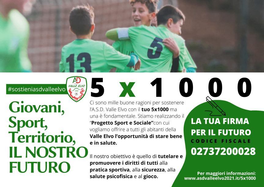 Tutte le informazioni sulla campagna 5×1000 a questo link: https://www.asdvalleelvo2021.it/5×1000/