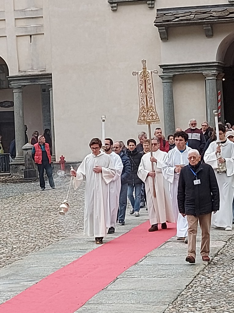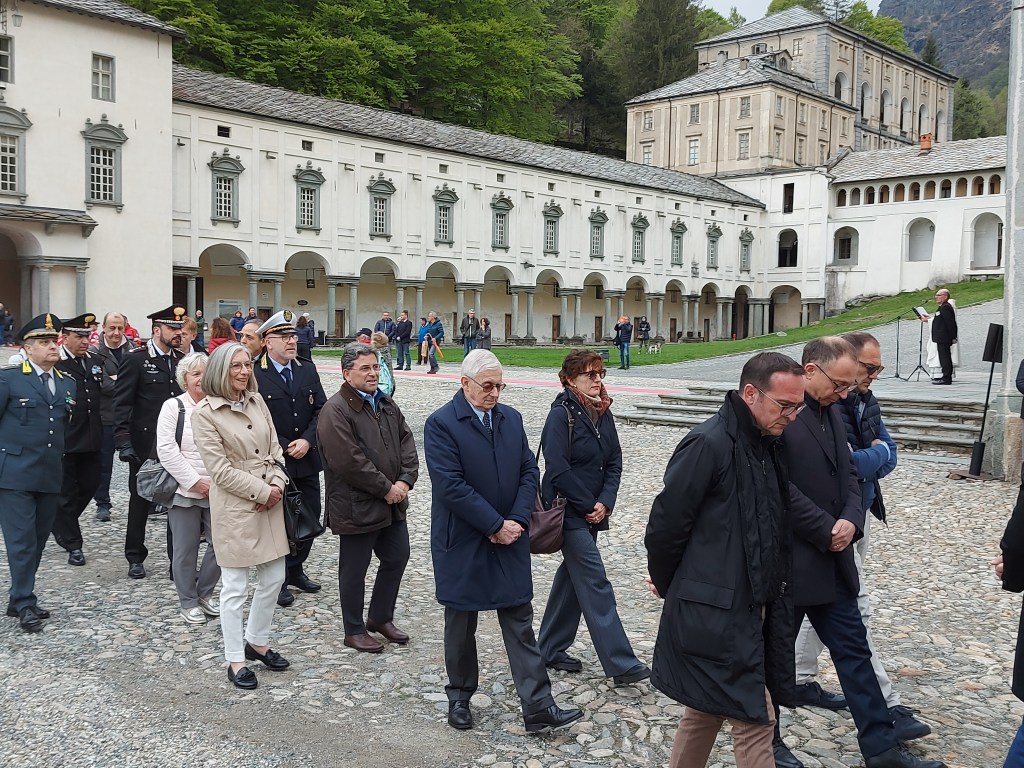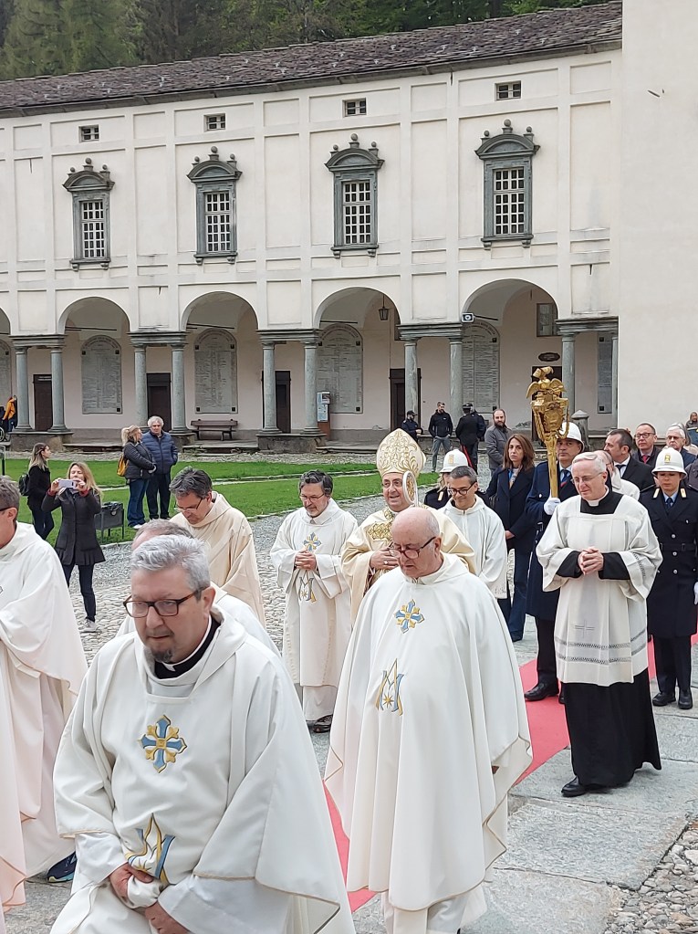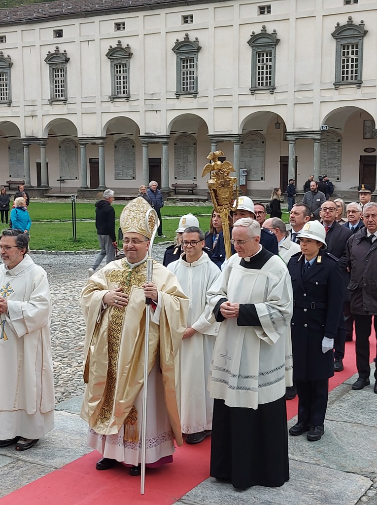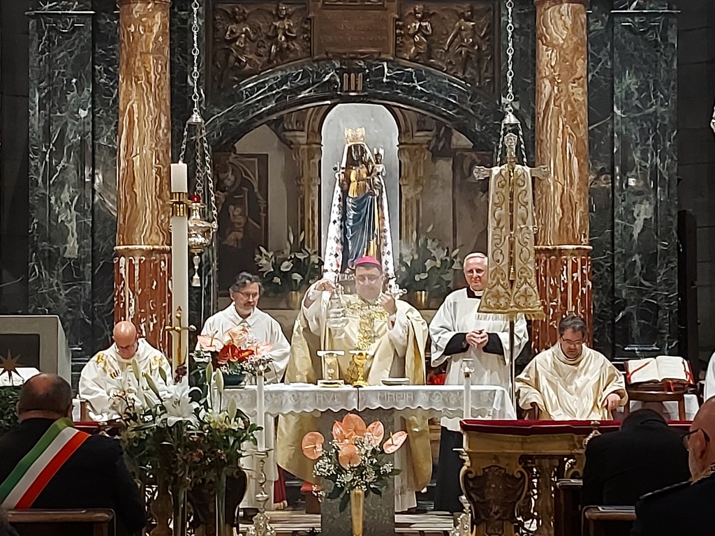 Sabato 4 maggio si è tenuto il tradizionale pellegrinaggio della Città di Biella dove dopo la tradizionale processione durante la Celebrazione Eucaristica il Vescovo di Biella monsignor Roberto Farinella ha ringraziato l’amministrazione comunale , i rappresentanti del governo regionale con l’Assessore Elena Chiorino e il consigliere regionale Michele Mosca e nazionale con il Sottosegretario alla Giustizia onorevole Andrea Delmastro, i rappresentanti della Questura con Sua Eccellenza il Questore dottor Claudio Ciccimarra per il ministero che svolgono al servizio della collettività. Il Vescovo ha ringraziato per i voti compiuti. Inoltre ha affidato tutti i ciclisti che domenica saranno a Biella per la Seconda Tappa del Giro d’Italia. Infine ha ripercorso la storia e l’ importanza del voto a Maria ricordando quanto siano importanti le Confraternite che nella storia hanno aiutato durante le epidemie. Il Vescovo infine ricorda quanto Maria ci invita a una carità creativa , una oasi di amore e di vita. “Tutti siamo ministri di questo progetto di vita “. Il Vescovo ha invitato a pregare per il bene comune, per la nostra città, per il lavoro ponendo così forza a chi opera al servizio della collettività. La funzione religiosa è proseguita con le intenzioni di preghiere e la consacrazione eucaristica.