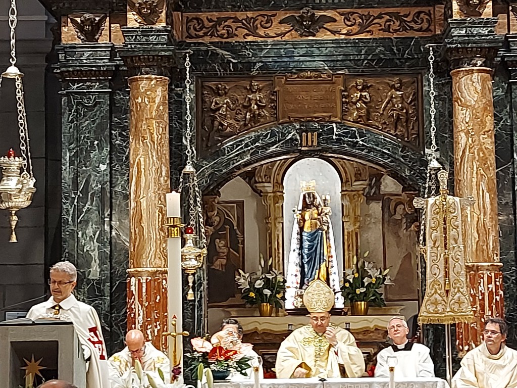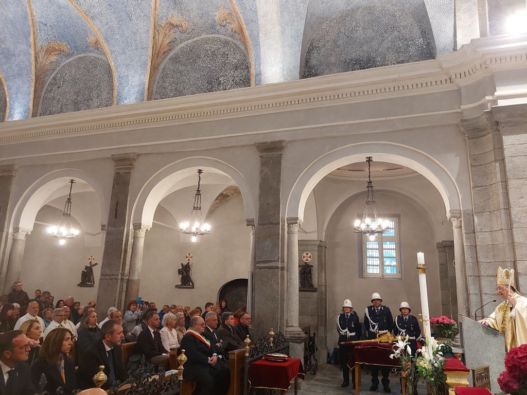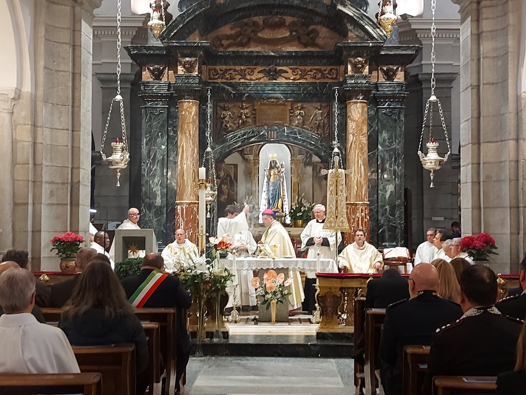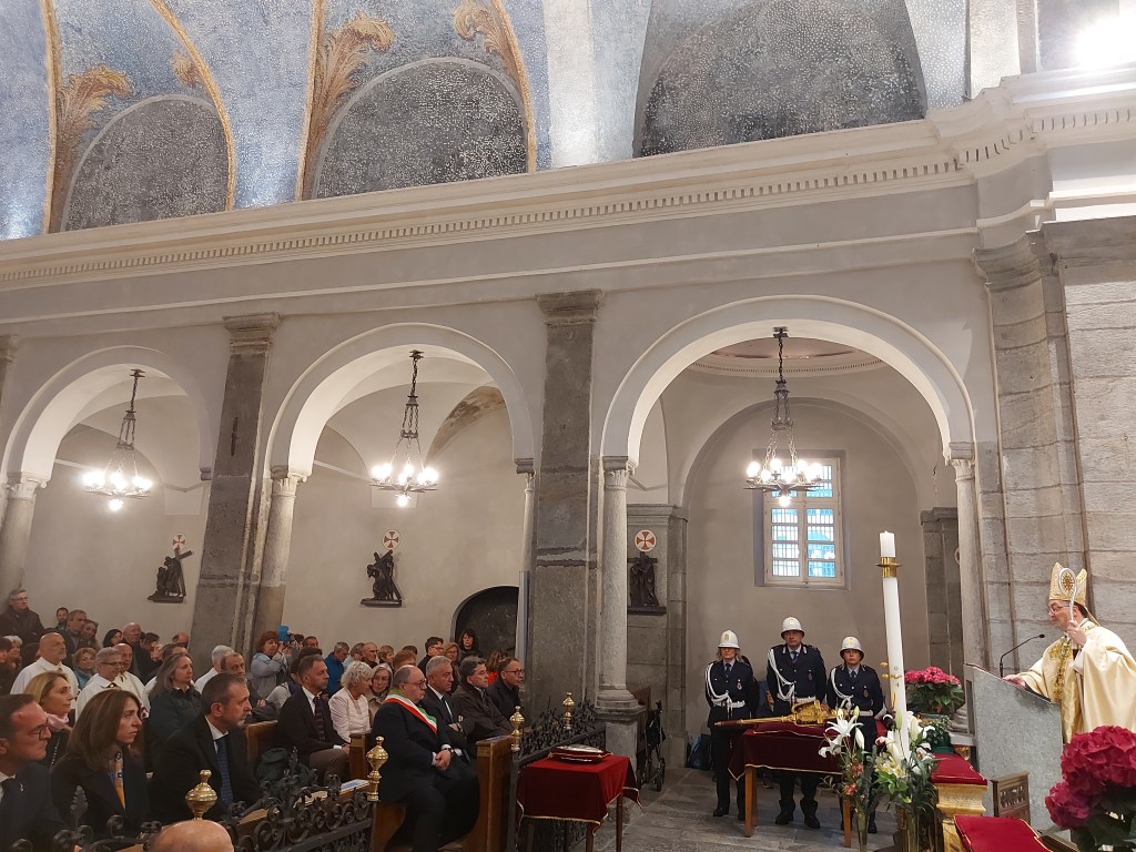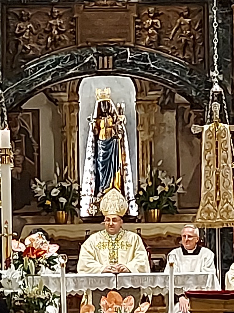 Sabato 4 maggio si è tenuto il tradizionale pellegrinaggio della Città di Biella dove dopo la tradizionale processione durante la Celebrazione Eucaristica il Vescovo di Biella monsignor Roberto Farinella ha ringraziato l’amministrazione comunale , i rappresentanti del governo regionale con l’Assessore Elena Chiorino e il consigliere regionale Michele Mosca e nazionale con il Sottosegretario alla Giustizia onorevole Andrea Delmastro, i rappresentanti della Questura con Sua Eccellenza il Questore dottor Claudio Ciccimarra per il ministero che svolgono al servizio della collettività. Il Vescovo ha ringraziato per i voti compiuti. Inoltre ha affidato tutti i ciclisti che domenica saranno a Biella per la Seconda Tappa del Giro d’Italia. Infine ha ripercorso la storia e l’ importanza del voto a Maria ricordando quanto siano importanti le Confraternite che nella storia hanno aiutato durante le epidemie. Il Vescovo infine ricorda quanto Maria ci invita a una carità creativa , una oasi di amore e di vita. “Tutti siamo ministri di questo progetto di vita “. Il Vescovo ha invitato a pregare per il bene comune, per la nostra città, per il lavoro ponendo così forza a chi opera al servizio della collettività. La funzione religiosa è proseguita con le intenzioni di preghiere e la consacrazione eucaristica.