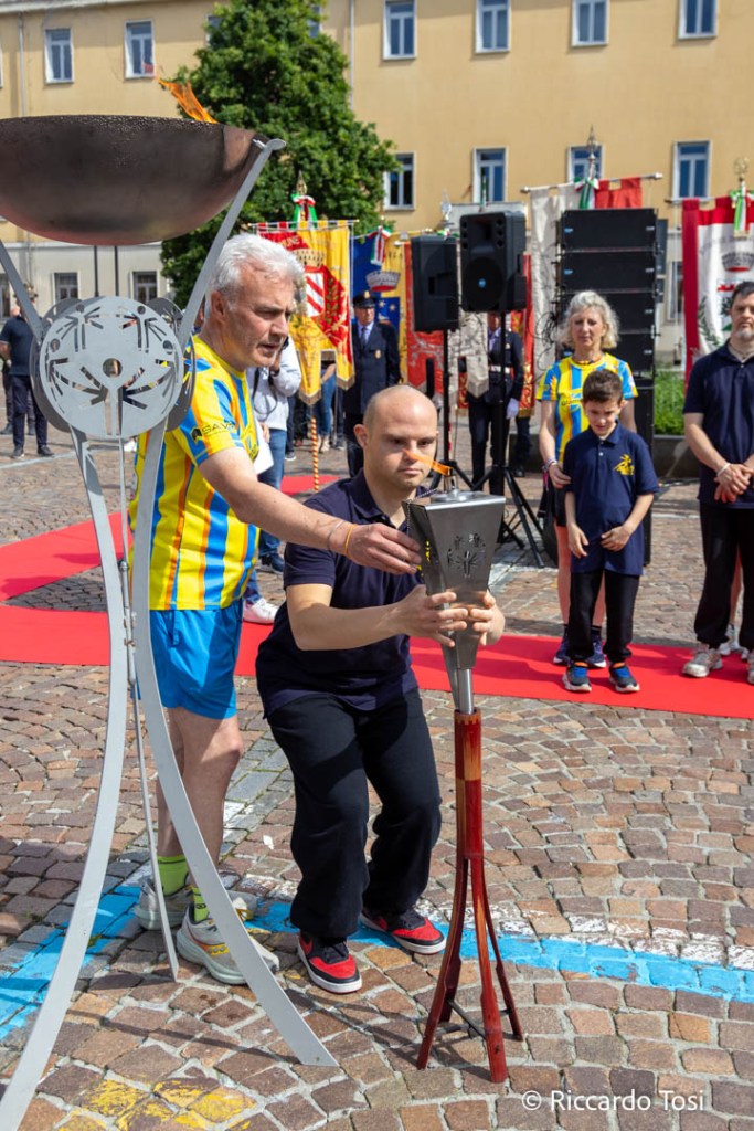Successivamente, i ragazzi di Special Olympics hanno acceso la torcia olimpica di fronte al pubblico presente. Infine, è stata effettuata la consegna delle Onorificenze dell’Ordine al Merito, conferite dal Presidente della Repubblica. Tra i premiati vi sono la signora Maria Deidda, assistente presso la Prefettura di Biella, che ha ricevuto il diploma di Cavaliere della Repubblica Italiana, il Tenente Colonnello Davide Lazzaro, Comandante della Compagnia Carabinieri di Biella, che ha ricevuto il diploma di Cavaliere della Repubblica Italiana, il dott. Massimo Girelli, funzionario giudiziario del Ministero della Giustizia, che ha ricevuto il diploma di Ufficiale, la dott.ssa Cristina Lanini, Viceprefetto Vicario della Prefettura di Vercelli, che ha ricevuto il diploma di Commendatore, il dott. Davide Garra, Viceprefetto Vicario della Prefettura di Ancona, che ha ricevuto il diploma di Commendatore, e il sig. Valentino Moda, pensionato ed ex agente della polizia municipale della Città di Biella, che ha ricevuto il diploma di Commendatore.
