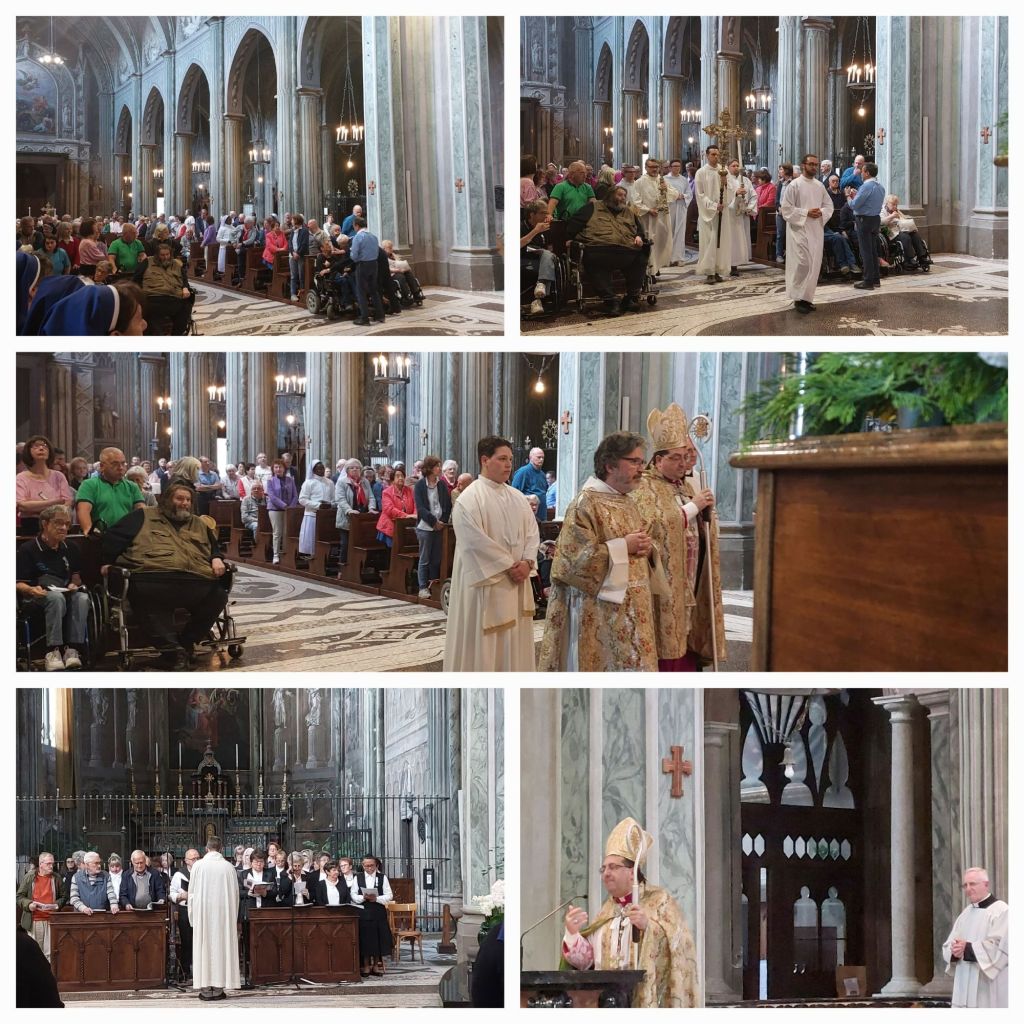 Grande partecipazione per la funzione religiosa preceduta dal Santo Rosario in vista dell’anniversario per la dedicazione della Chiesa Cattedrale di Biella di Santo Stefano commemorato con dei Solenni Vespri alla presenza del Capitolo dei Canonici della Cattedrale di Santo Stefano che è Madre di tutte le Chiese del territorio biellese in quanto chiesa episcopale ovvero del Vescovo. Centrale il popolo dell’Oftal con tutti gli ammalati.