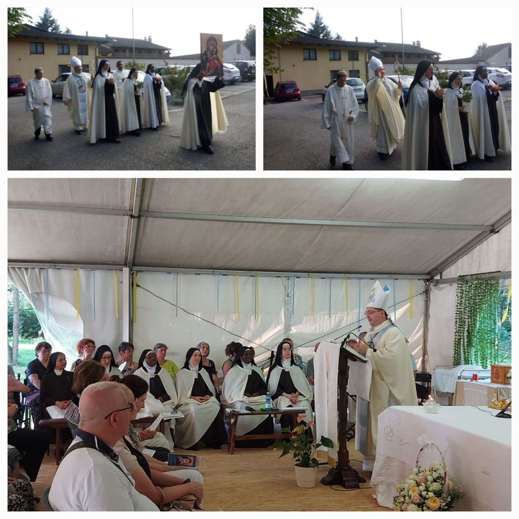 Martedì 16 luglio al monastero Mater Carmeli di Chiavazza si è celebrata la Solennità della Madonna del Carmine. Il ritrovo è stato alle 15:45 per l’Ora Nona, l’Esposizione del Svs. Sacramento e la recita del Rosario; alle 17:30 si sono recitati i Vespri Solenni. Ma il culmine è stato alle 18:30 con la Santa Messa celebrata dal vescovo di Biella Monsignor Roberto Farinella. Nell’omelia il vescovo ha detto che i fedeli sono lì per dire grazie alle Sorelle Carmelitane per la loro presenza; poi ha parlato del passo del Vangelo di Luca nel quale i discepoli discutono fra di loro su chi sia il più importante. A volte anche nella Chiesa si discute su chi sia più importante, ma la realtà è che tutti i carismi sono importanti. Poi ha detto che il cristiano non può dirsi tale se non è contemplativo. Il Signore dice che, se ci deve essere un primato, il primato spetta all’amore. Nella Bibbia il Carmelo è cantato come il monte della bellezza; su quel monte Elia difese la fede di Israele. Chi ama la Vergine Santa va verso suo Figlio. Il vescovo ha poi parlato di San Simone Stock, che è una sorta di cofondatore dell’ordine carmelitano. Poi Monsignor Farinella ha fatto notare che nella Bibbia le cose importanti avvengono sempre di notte. E di notte la Vergine apparve a San Simone e gli donò lo scapolare. San Giovanni Paolo II era legato all’ordine carmelitano; ma ci sono tanti altri papi legati allo scapolare. La Vergine Maria è vicina a noi in punto di morte e dopo la morte ci conduce in Cielo.