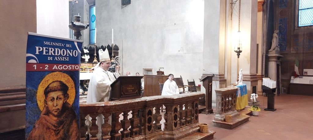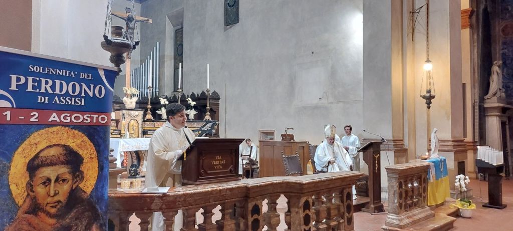 Venerdì 2 agosto chiesa gremita alla Festa di Santa Maria degli Angeli del Perdono di Assisi. Le funzioni iniziate alle 7.45, 10.00 hanno visto tanta partecipazione. Centrale alla Sera con i Solenni Vespri delle 19.45 e la Santa Messa delle 20.30. A presiedere il Vescovo di Biella monsignor Roberto Farinella introdotto dal Padre Guardiano padre Oscar. Presente buona parte del clero biellese. Singolare l’omelia del Vescovo Roberto Farinella centrata sul significato del Perdono di Assisi e sulla figura di San Francesco .