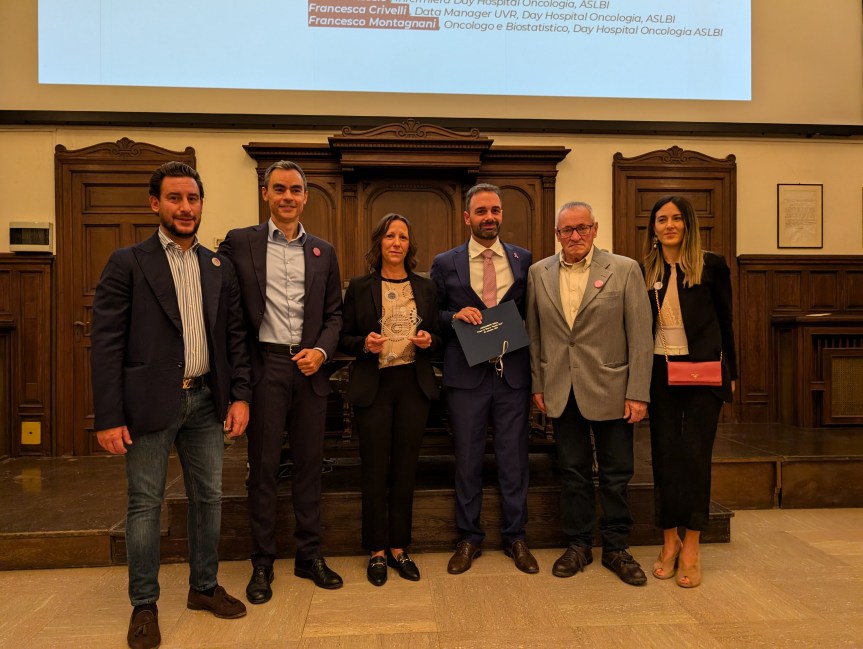 Tre premi da 3.000 euro assegnati ai vincitori dei bandi 2024 per finanziare le ricerche più significative in ambito oncologico: sono i premi “Daniele Rosa”, che l’associazione DAROSA Onlus ha assegnato a un progetto di ricerca in ambito medico, infermieristico e psiconcologico, vincitori del bando 2024. La serata di Premiazione della 9ª edizione si è svolta nell’Aula Magna dell’Accademia di Medicina. Il team del Day Hospital Oncologia dell’ASL Biella composto da Michela Piasentin (infermiera), Elisa Bonessio (infermiera), Francesca Crivelli (data manager UVR) e Francesco Montagnani (oncologo e biostatistico), è stato selezionato come vincitore del premio infermieristico.
