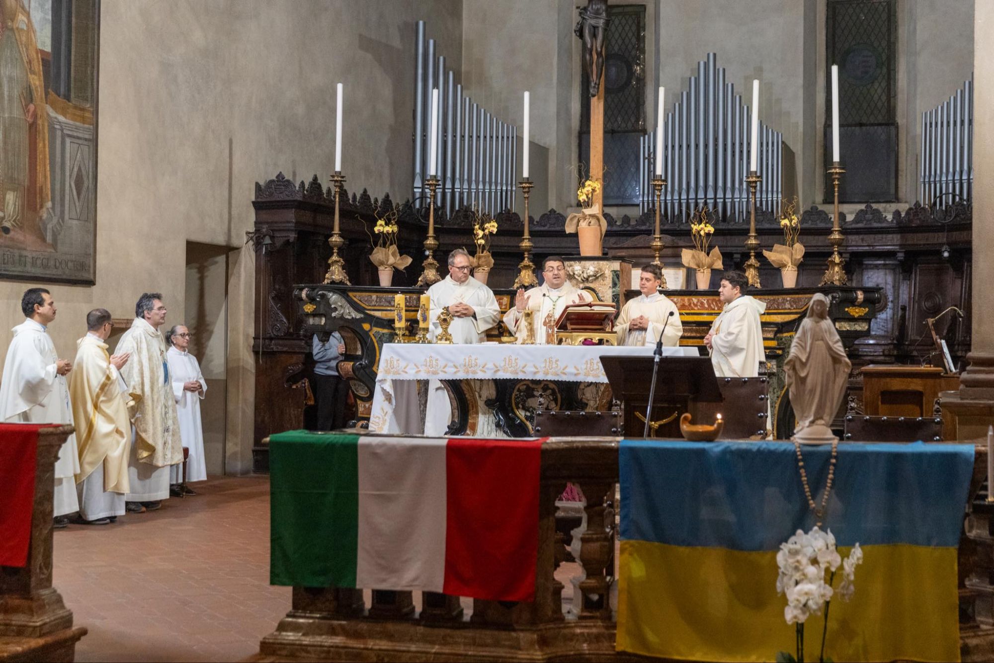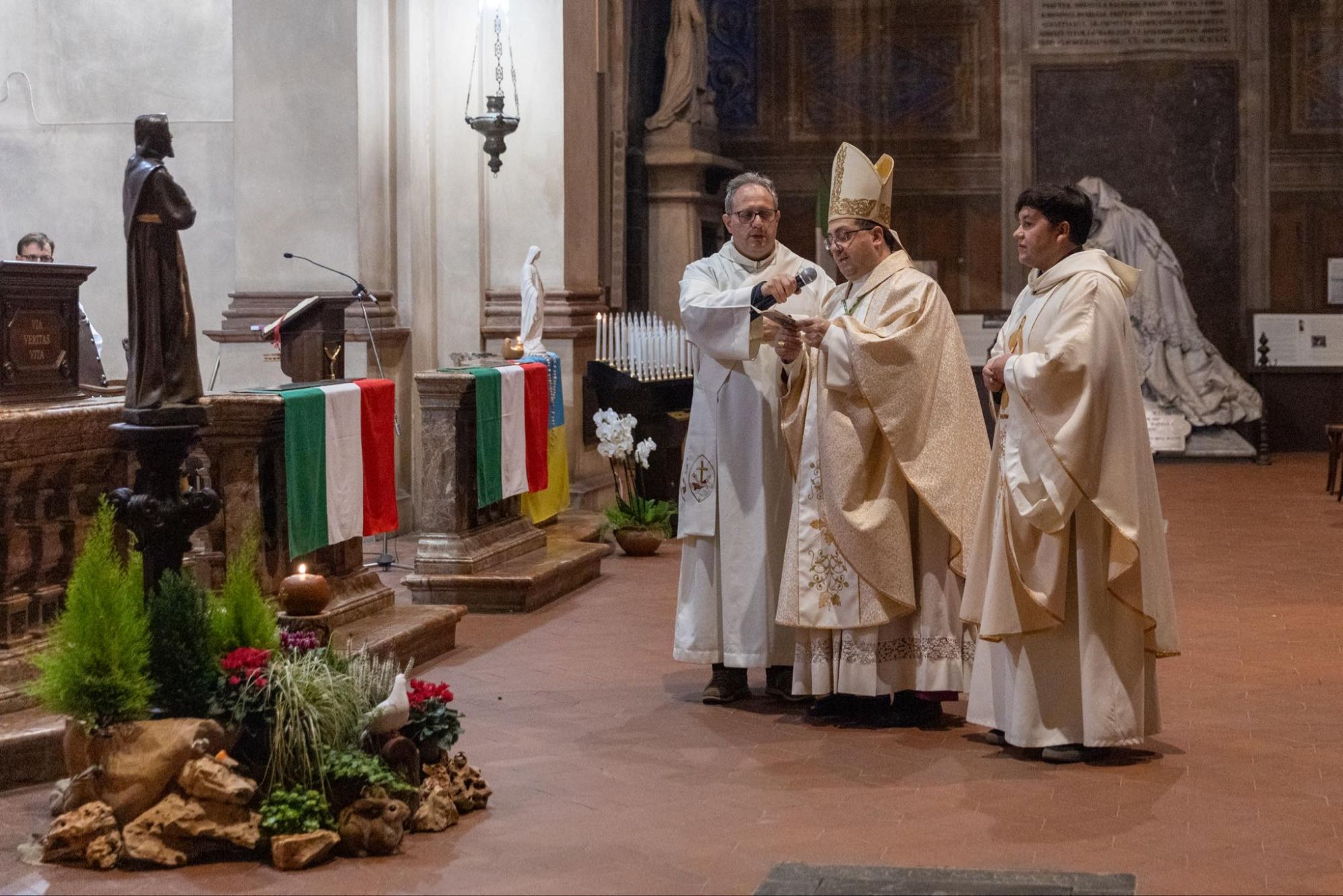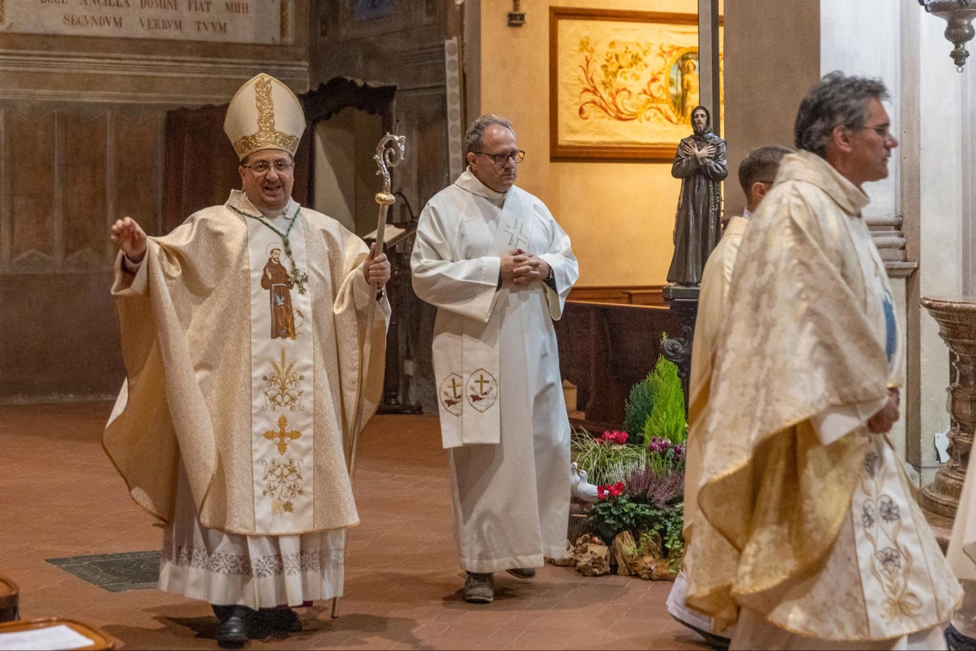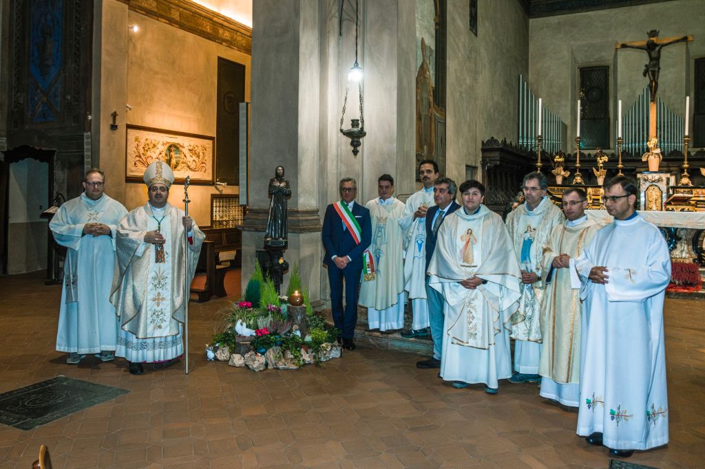 Venerdì 4 ottobre alle 20.30 si è svolta una significativa Santa Messa Solenne in occasione della Solennità di San Francesco di Assisi, con la partecipazione del Sindaco Marzio Olivero. La celebrazione eucaristica, presieduta dal Vescovo di Biella, monsignor Roberto Farinella, e concelebrata dai Frati Francescani, ha rappresentato un momento di profonda spiritualità in onore del Patrono d’Italia e Fondatore dell’Ordine Francescano.Le toccanti parole di benvenuto del Padre Guardiano, fra Oscar, e l’omelia di Padre Edoardo Semko hanno arricchito la liturgia. Anche le parole del Vescovo, da sempre devoto a San Francesco, hanno toccato i cuori dei presenti. Un momento particolarmente emozionante è stato l’accensione della candela votiva a San Francesco, accompagnata dalla lettura della preghiera tradizionale da parte del Sindaco Marzio Olivero.La funzione si è conclusa con la consueta foto di rito, testimoniando la comunità unita nella fede e nella devozione verso San Francesco.