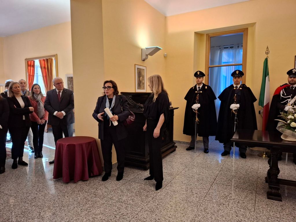 Il Prefetto , accogliendo i presenti invitati, ha di seguito donato il riconoscimento con le pergamene alla dottoressa Rispoli Cavaliere del Lavoro e al Sindaco di Rosazza Francesca Delmastro Dalle Vedove.