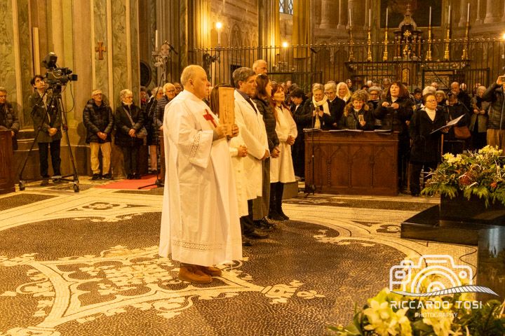 Successivamente un frate francescano della Terra Santa ha consegnato a Monsignor Farinella una croce con al proprio interno una reliquia.