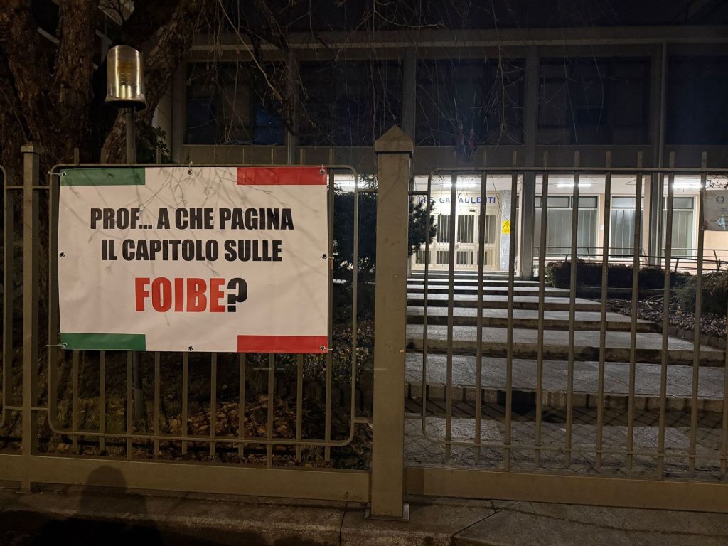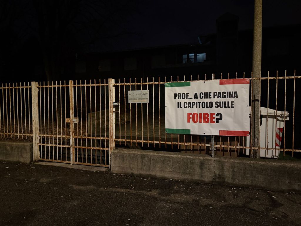 Gioventù Nazionale Biella ha deciso di apporre, fuori da tutte le scuole della Città, lo striscione: “PROF… A CHE PAGINA IL CAPITOLO SULLE FOIBE?” per ricordare, con la dovuta sensibilità, ai Professori e agli Studenti questo triste capitolo della storia italiana, affinché non cada nell’oblio.