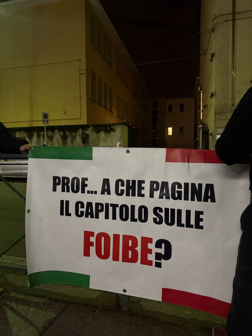 Gioventù Nazionale Biella ha deciso di apporre, fuori da tutte le scuole della Città, lo striscione: “PROF… A CHE PAGINA IL CAPITOLO SULLE FOIBE?” per ricordare, con la dovuta sensibilità, ai Professori e agli Studenti questo triste capitolo della storia italiana, affinché non cada nell’oblio.