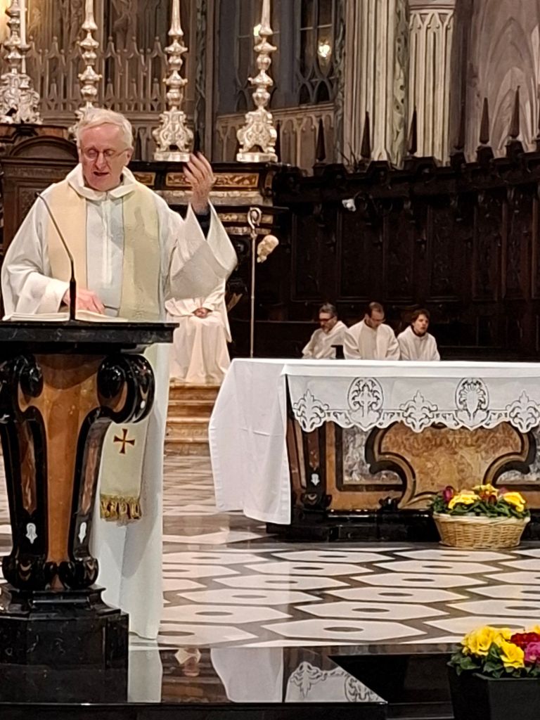 La Santa Messa è proseguita con la celebrazione eucaristica; alla fine monsignor Farinella ha incensato la statua della Madonna di Lourdes e poi ha impartito la benedizione Solenne.