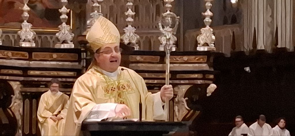 Il vescovo ha iniziato l’omelia dicendo che noi Celebriamo la bellezza della fede in Maria e ricordiamo le sue apparizioni a Santa Bernadette; tali apparizioni hanno un messaggio di conversione. Bernadette non parlava il francese, ma il dialetto, quindi non era in grado di seguire il catechismo; la Vergine in un certo senso le impartì il catechismo.