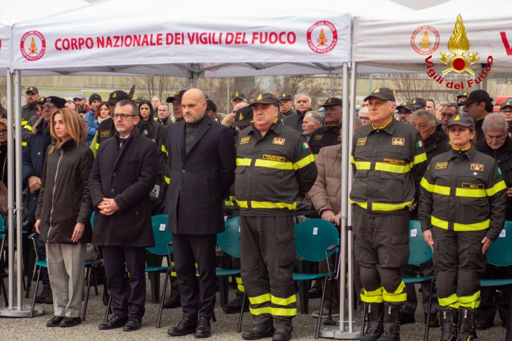 Questa mattina presso la Caserma dei Vigili del Fuoco di Biella, il Comandante ing. Amalia Tedeschi ha accolto il Sottosegretario di Stato On. Emanuele Prisco e il Capo del Corpo Nazionale dei Vigili del Fuoco ing. Eros Mannino, per la cerimonia di intitolazione della sede al Vigile Volontario Ausiliario Aurelio Giampaoli, caduto in servizio il 18 febbraio di 55 anni fa.