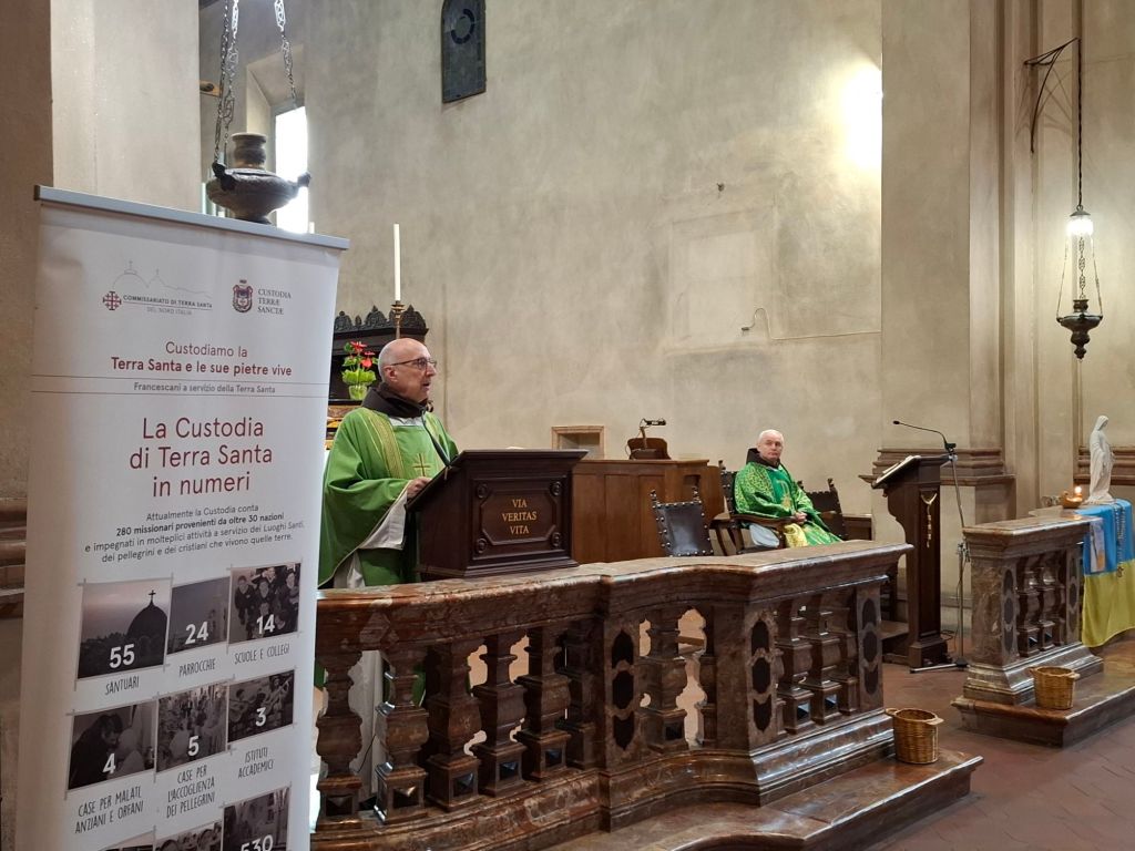 Padre Gianluigi, custode della Terra Santa ha officiato la Messa Prefestiva e le Messe Festive incontrando i fedeli dopo messa .