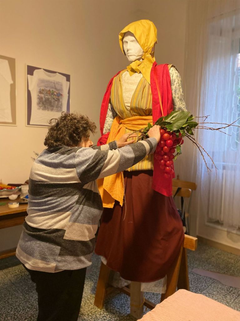 La pira di quest’anno, fra le più grandi di sempre, di cui si ha conoscenza, realizzata a Rionero ( sei metri di diametro alla base, 7 metri alla pancia, 6 metri in chiusura con 7 metri di altezza) assume per questo la forma di una botte , vedrà sostituita la “pupa di carta pesta multicolore” tradizionale da una figura giovane, in grandezza naturale e sarà arricchita dalla presenza di un’altra meno giovane. Le due figure simboleggiano la brutta stagione appena trascorsa, il passato… ( quella meno giovane ) e la primavera…il futuro (la giovane vestita di colori vivaci).