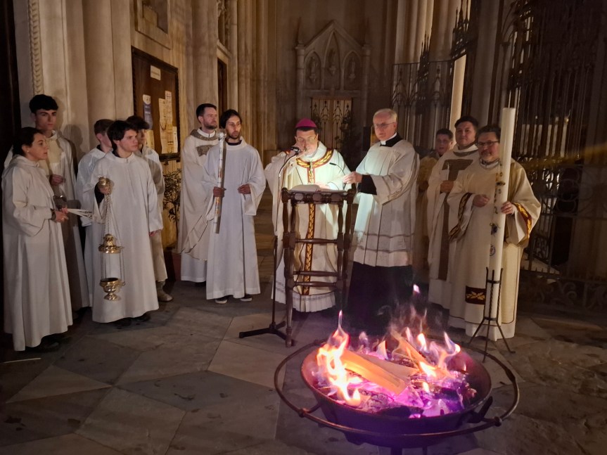 La luce che abbiamo acceso all’inizio della Veglia ci ricorda che la Risurrezione non è un ricordo, è una presenza. È Gesù vivo che ci chiama ogni giorno a risorgere con Lui, a lasciare le tenebre per seguire la luce.