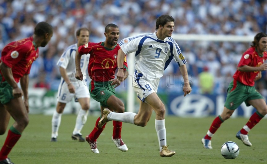 Fin dai primi minuti il match ha uno spartito ben delineato con il Portogallo che attacca a testa bassa e la Grecia che si difende con ordine. Il fortino ellenico regge e al 12′ della ripresa arriva l’episodio che non ti aspetti: sugli sviluppi di un calcio d’angolo in una delle sporadiche sortite offensive Angelos Charisteas, centravanti greco dal fisico possente, colpisce di testa per il vantaggio che gelo l’Estadio Da Luz.