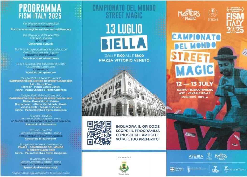 Domenica 13 luglio con il Patrocinio del Comune di Biella si svolgerà in Piazza Vittorio Veneto la tappa biellese del Campionato del mondo di Street Magic 2025.