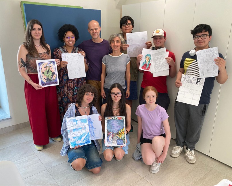 Il primo gruppo di giovani, a fine giugno, per due giornate, si è confrontato con Sergio Ponchione, ospite d’eccezione, fumettista e autore di opere come Obliquomo, Grotesq, Impronte Maltesi e DKW – Ditko Kirby Wood, poi raccolte nel volume Memorabilia insieme a materiale inedito. Tra i suoi lavori spicca anche la copertina celebrativa dei 50 anni della rivista Linus. Durante la sua carriera, Ponchione ha ricevuto importanti riconoscimenti, tra cui il Premio Gran Guinigi a Lucca Comics & Games (2009) e il Premio Attilio Micheluzzi al Napoli Comicon (2012).