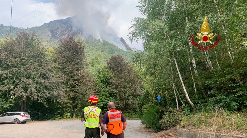 Dalla notte di domenica i Vigili del fuoco di Biella sono impegnati all’Alpe Noveis per un incendio di bosco in zona Bocchetta Gemevola.