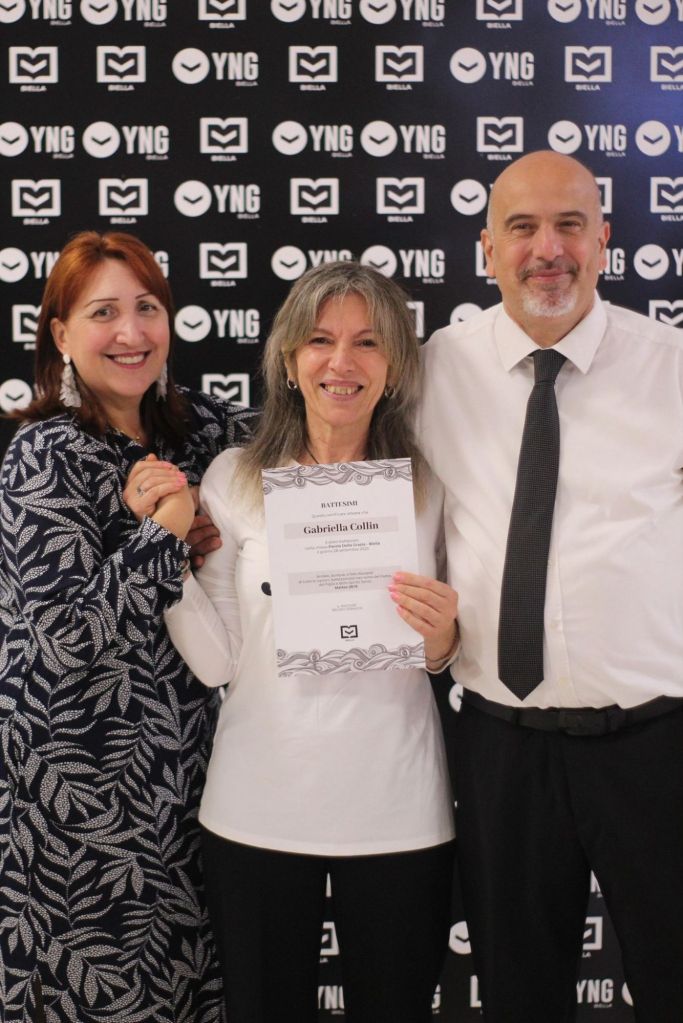 “ Decidere di vivere per Cristo , con Cristo , in Cristo . L’ unione tra la mia famiglia naturale e oggi spirituale mi aiutano a appartenere alla fede con più forza. Non credevo più nella Amicizia con la A maiuscola soprattutto dopo una chiusura di 20 anni di rapporto malsano . Ho trovato fratelli e sorelle che mi hanno aiutato a ricredere in questo valore tra cui i miei responsabili come il Pastore Bruno Donadio, Pastora Alessandra Galano Donadio e soprattutto Gabriele Donadio con Federica Bova Donadio con David Paul Intendencia e Chiara Torino Intendencia che mi dimostrano amore, parola capibile solo se si è cristiani, standomi vicino ogni giorno in ogni momento senza interesse se non il mio bene facendomi scoprire quel senso di Amicizia lasciando al personale i ringraziamenti più intimi. Oltre a loro tutto il gruppo dei giovani con lo staff della pdg young e tutti i ragazzi e le ragazze ed infine tutto il Consiglio della Pdg Biella.“