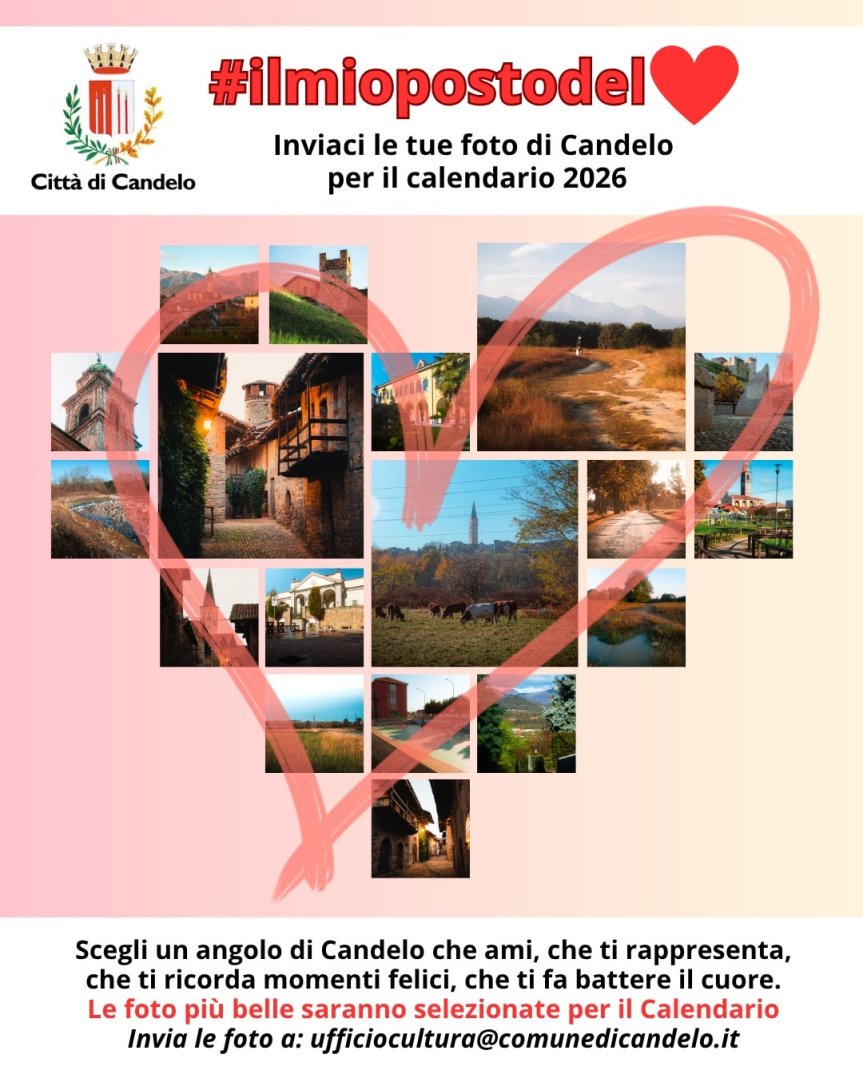 Le immagini più significative (non è necessario siano foto professionali) ed i ricordi più emozionanti diventeranno parte del calendario 2026 “#ilmiopostodel❤️”, che accompagnerà i dodici mesi del nuovo anno di tutti i Candelesi.