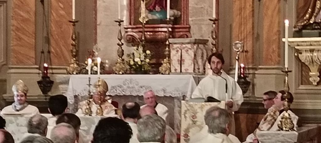 A pronunciare l’omelia è stato lo stesso Monsignor Farinella, che ha iniziato dicendo che la festa del seminario ci pone di fronte alla figura di San Francesco di Sales; la preghiera della Chiesa ci aiuta a chiedere al Padre le cose buone, le cose di cui abbiamo bisogno. Quando si arriva davanti al Signore, il primo atteggiamento deve essere di ringraziare. Dopo di ciò, bisogna invocare il dono dello Spirito Santo. San Paolo dice che il nostro cuore si esprime a gemiti, a volte incomprensibili per noi. Oggi tutti sentiamo il bisogno di avere tempo; San Francesco di Sales trovò tempo per la sua vita interiore. Egli scrisse delle lettere, nelle quali diede consigli. San Francesco di Sales è il patrono dei giornalisti. La nostra vita spirituale si inaridisce non perché non andiamo più a messa e perdiamo la fede, ma perché non troviamo più il tempo per stare con il Signore. San Francesco di Sales si fece tutto a tutti nella carità apostolica. Con questo santo si diffuse la devozione al Sacratissimo Cuore di Gesù. San Francesco di Sales anticipò di quattro secoli il Concilio Vaticano II, dicendo che la santità è possibile per tutti i battezzati, è aperta a tutti, quali che siano le loro condizioni di vita. Il farsi tutto a tutti, di cui parla San Paolo, è andare incontro alle persone. San Francesco di Sales sapeva parlare ai dotti e alla gente comune. La verità porta sempre a scoprire l’amore di Dio. I sacerdoti non vengono scelti per essere separati dalle persone, ma per farsi tutto a tutti (è detto nella Lettera agli Ebrei). Papa Francesco e Papa Leone XIV ci ricordano che un cristiano, anche nella prova, è un uomo o una donna di gioia.